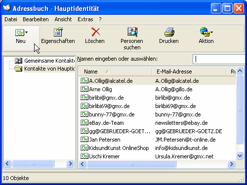 Eine neue Adresse legt man an, indem man auf <Neu> klickt.