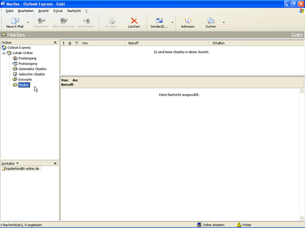 Nun haben wir an der entsprechenden Stelle einen neuen Ordner inden wir unsere eMail von und an Marlies ablegen können.